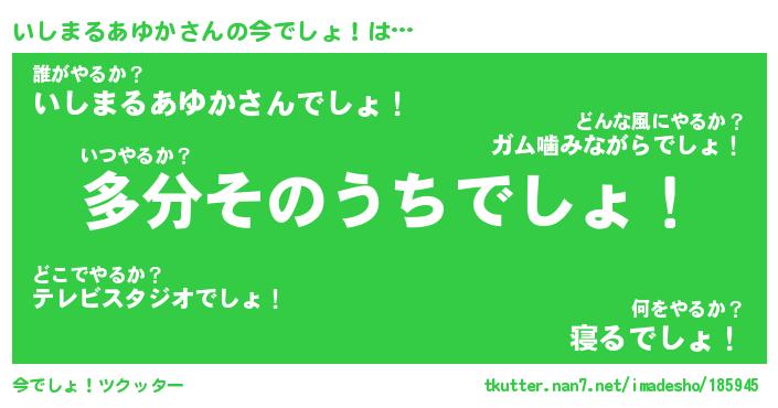 | 恥ずかしいあだ名 | 『プリティーいしまるあゆか』『いしちん』 |