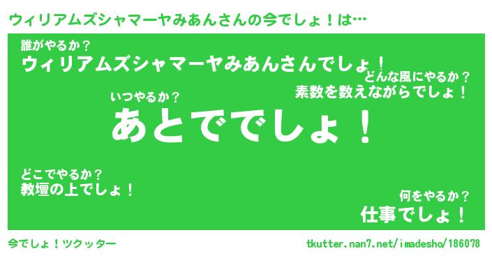 | 胡散臭い通販商品みたいなあだ名 | 『モテモテ間違いなし霊験あらたかなお札…その名も「ウィリアムズシャマーヤみあん」』 |
