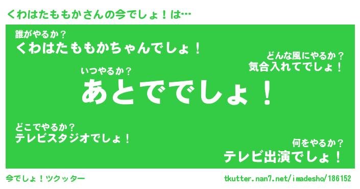 | 伝説のあだ名 | 『不死鳥のスナイパーくわはたももか』 |
