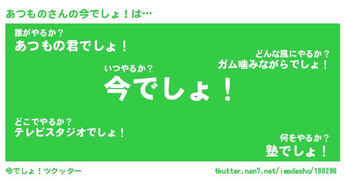 | 意味不明あだ名 | 『ペロリンあつもの』『永久保存あつもの』 |