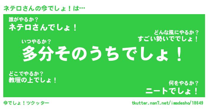 | ヒーロー風カッコイイあだ名 | 『スーパーネテロ』『ウルトラネテロマン』 |