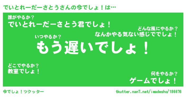 | ヘコむあだ名 | 『でいもー』『豆乳』『でいっぺ』 |