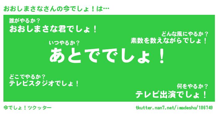 | 胡散臭い通販商品みたいなあだ名 | 『モテモテ間違いなし霊験あらたかなお札…その名も「おおしまさな」』 |