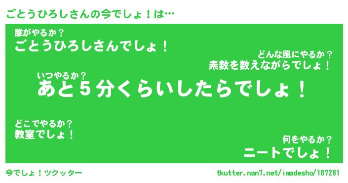| 伝説のあだ名 | 『封印されしスナイパーごとうひろし』 |