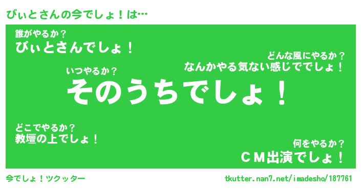 | 肩書あだ名 | 『びぃと御曹司』『びぃと総理大臣』 |