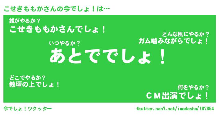 | 肩書あだ名 | 『こせきももか店長』『こせきももか班長』 |