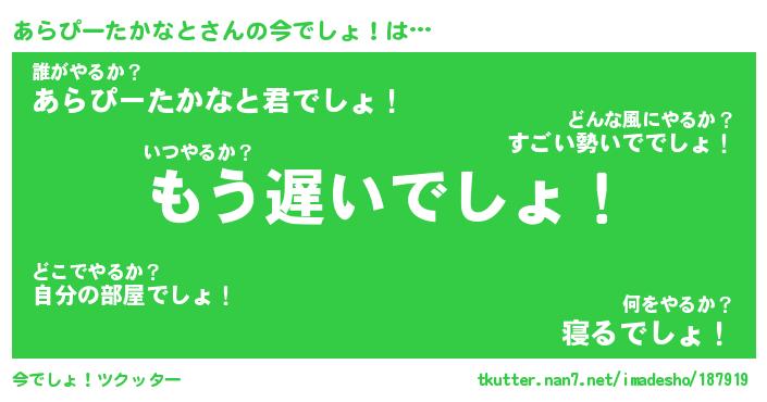 | 男性向けラノベタイトル風あだ名 | 『あらぴーたかなとの憂鬱』 |