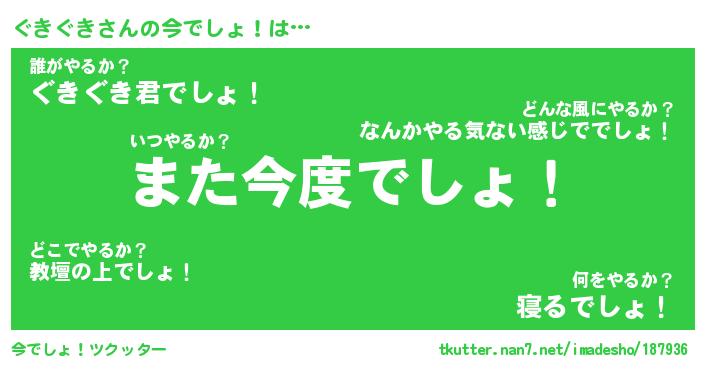 | ヘコむあだ名 | 『ぐきもー』『豆乳』『ぐき太郎』 |