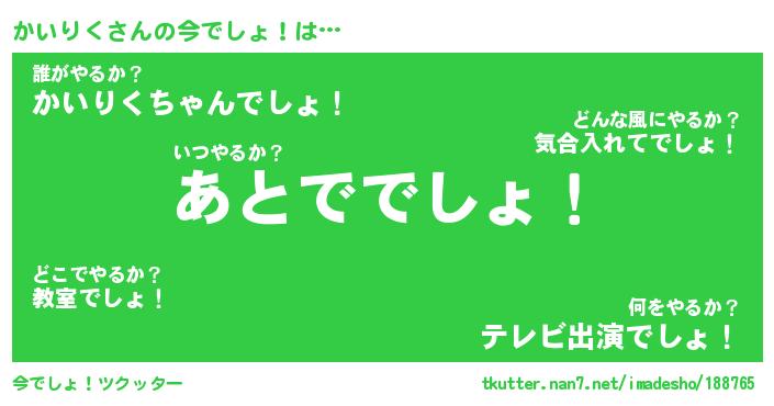 | ヘコむあだ名 | 『かいもー』『酢こんぶ』『かいっ子』 |