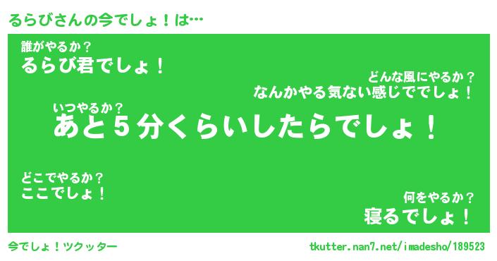 | 2回繰り返すあだ名 | 『るらるら』『るるらら』『ぬめぬめ』 |