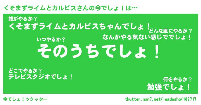 | 胡散臭い通販商品みたいなあだ名 | 『必ず成功する霊験あらたかなお札…その名も「くそまずライムとカルビス」』 |