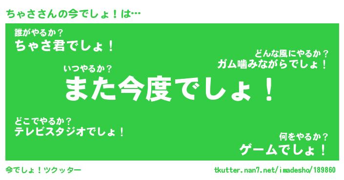 | 欧米人風あだ名 | 『マイケルちゃさ』『ちゃさクリステル』 |