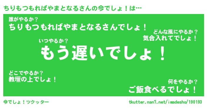| 胡散臭い通販商品みたいなあだ名 | 『必ず成功する水晶球…その名も「ちりもつもればやまとなる」』 |
