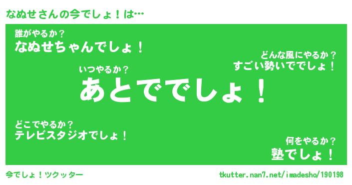 | 肩書あだ名 | 『なぬせ社長』『なぬせ国家主席』 |