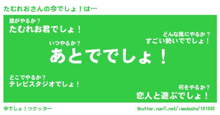 | 意味不明あだ名 | 『ペロリンたむれお』『永久保存たむれお』 |