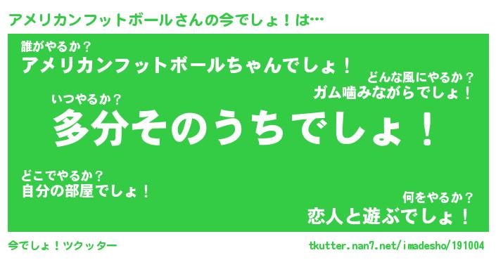 | 料理風あだ名 | 『節約★アメリカンフットボールと油揚げの玉子丼』 |