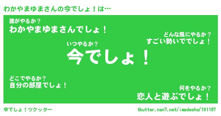 | 恥ずかしいあだ名 | 『プリティーわかやまゆま』『わかっちょ』 |