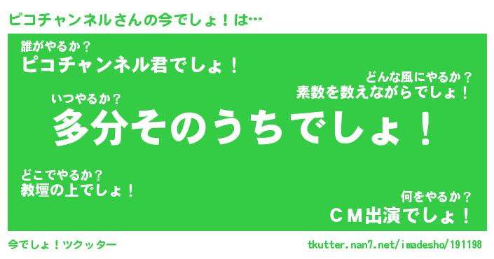 | 伝説のあだ名 | 『不死鳥のスナイパーピコチャンネル』 |