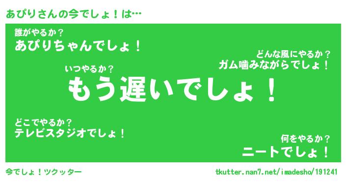 | 欧米人風あだ名 | 『マイケルあぴり』『あぴりクリステル』 |