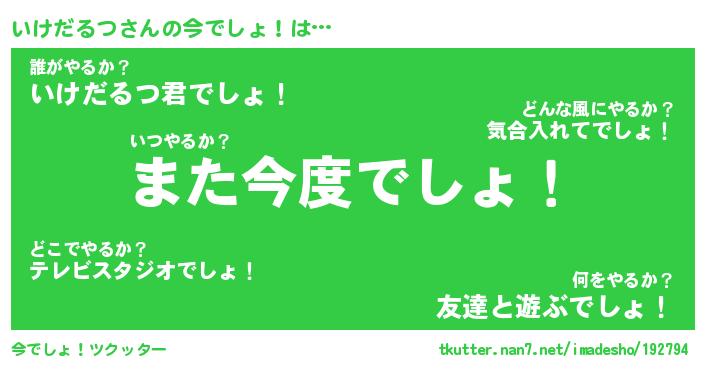 | 胡散臭い通販商品みたいなあだ名 | 『億万長者になれるブレスレット…その名も「いけだるつ」』 |
