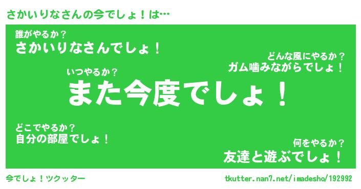 | 伝説のあだ名 | 『封印されし竜騎士さかいりな』 |