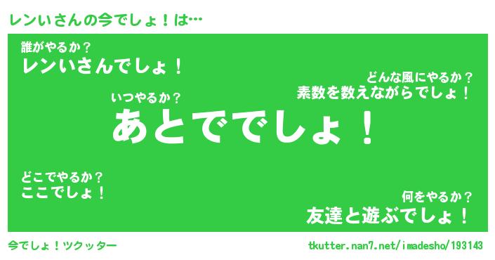 | ヘコむあだ名 | 『レンもー』『つくし』『レンっ子』 |