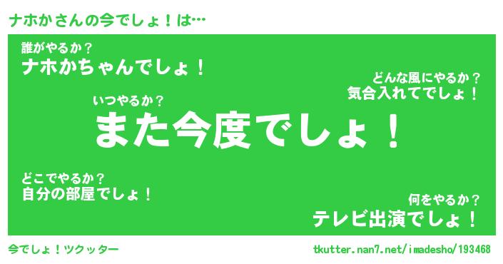 | ヘコむあだ名 | 『ナホにゅー』『酢こんぶ』 |