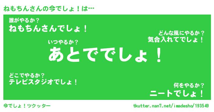 | 肩書あだ名 | 『ねもちん御曹司』『ねもちん国家主席』 |