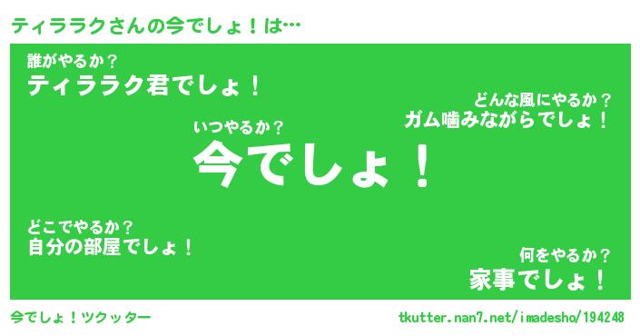 | ヘコむあだ名 | 『ティにー』『豆乳』『ティを』 |