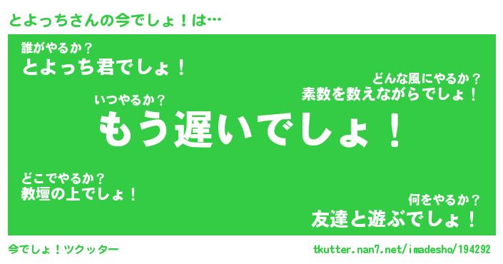 | 意味不明あだ名 | 『ペロリンとよっち』『永久保存とよっち』 |