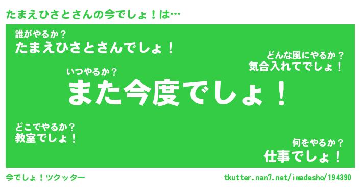 | 肩書あだ名 | 『たまえひさとCEO』『たまえひさと教頭』 |