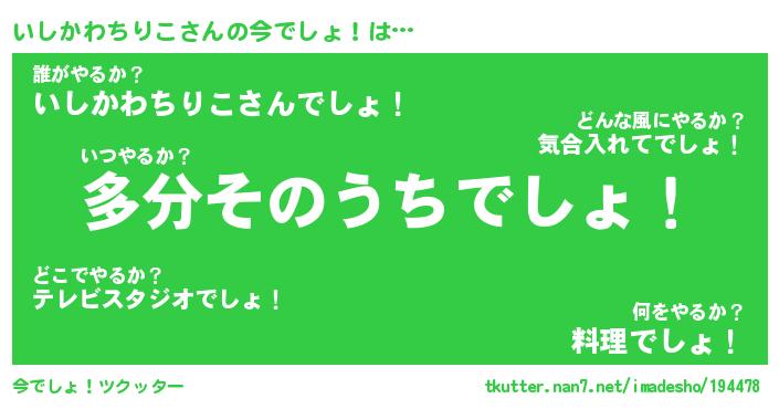 | 恥ずかしいあだ名 | 『プリティーいしかわちりこ』『いしちん』 |