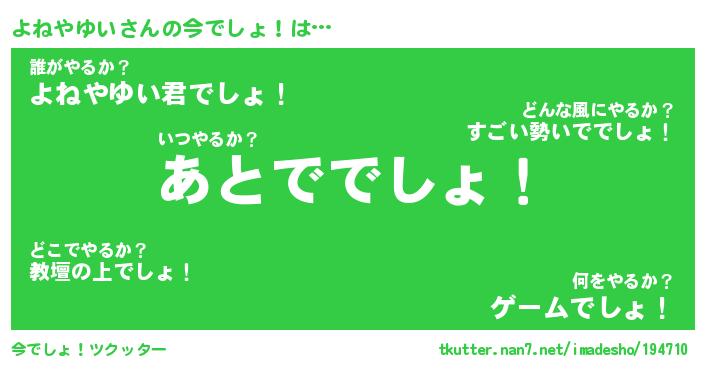 | ヘコむあだ名 | 『よねにゅー』『豆乳』『よね太郎』 |