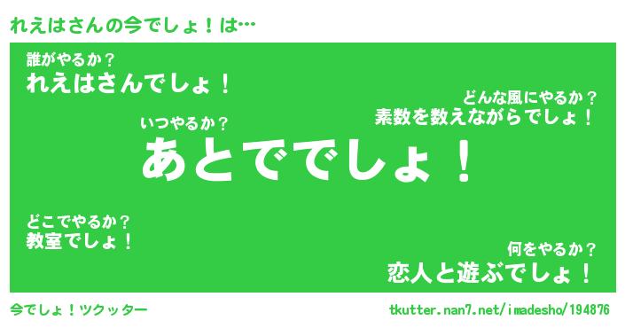 | 意味不明あだ名 | 『ペロリンれえは』『れえはフォーエバー』 |