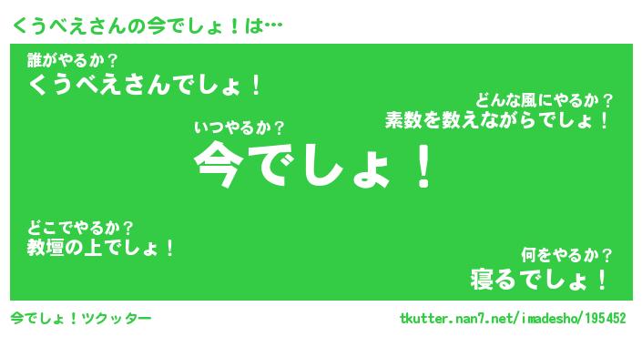 | 意味不明あだ名 | 『ペロリンくうべえ』『永久保存くうべえ』 |