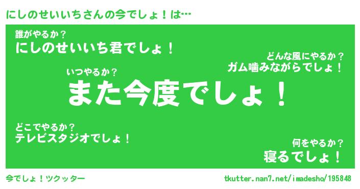 | ヘコむあだ名 | 『にしにゅー』『なまこ酢』『にしお』 |