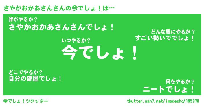 | 伝説のあだ名 | 『伝説のスナイパーさやかおかあさん』 |