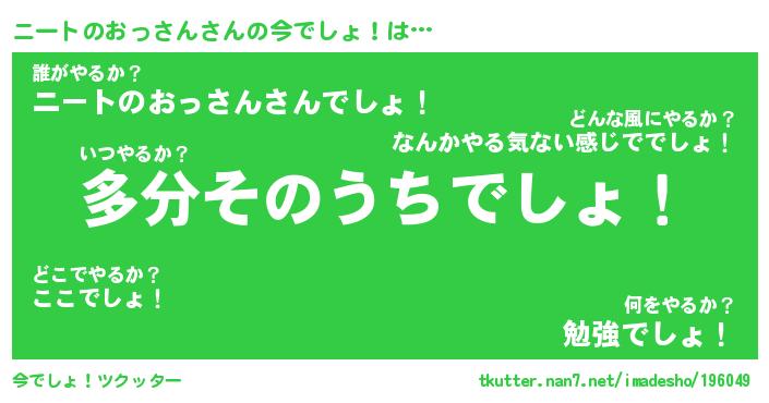 | 男性向けラノベタイトル風あだ名 | 『ニートのおっさんの憂鬱』 |