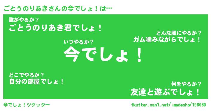 | 肩書あだ名 | 『ごとうのりあき御曹司』 |