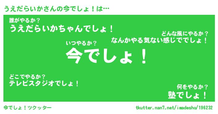 | 肩書あだ名 | 『うえだらいか社長』『うえだらいか塾長』 |