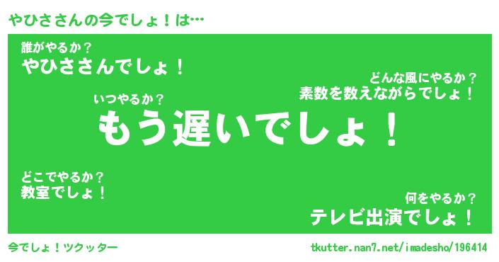| ピコ太郎風あだ名 | 『ヤコ八郎』『ピヤ八郎』『ヤヒ四郎』 |
