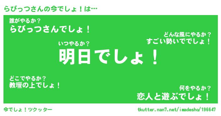 | 意味不明あだ名 | 『ペロリンらびっつ』『永久保存らびっつ』 |