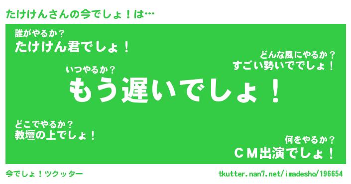 | 肩書あだ名 | 『たけけん御曹司』『たけけん総理大臣』 |