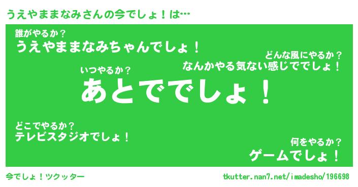 | 胡散臭い通販商品みたいなあだ名 | 『モテモテ間違いなし水晶球…その名も「うえやままなみ」』 |