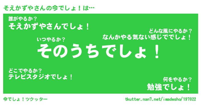 | 肩書あだ名 | 『そえかずや御曹司』『そえかずや班長』 |