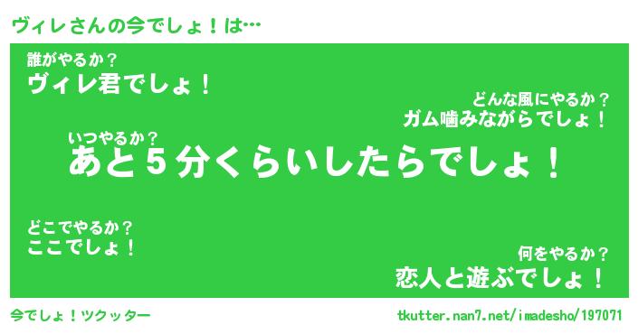 | 自動車の名前っぽいあだ名 | 『ヴィティマ』『ヴクア』『デミヴ』 |