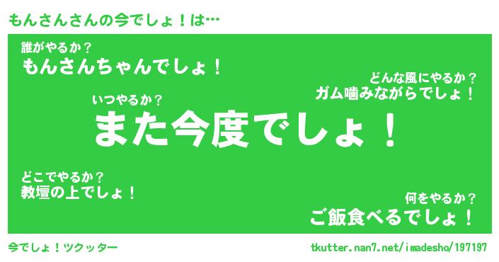 | 意味不明あだ名 | 『ペロリンもんさん』『永久保存もんさん』 |