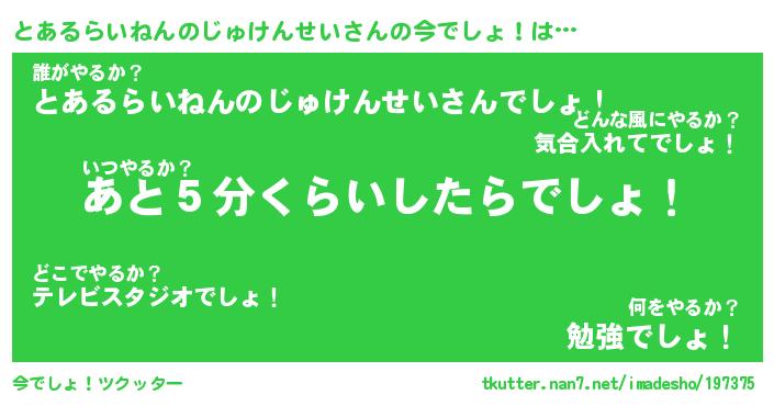 | 胡散臭い通販商品みたいなあだ名 | 『億万長者になれる霊験あらたかなお札…その名も「とあるらいねんのじゅけんせい」』 |