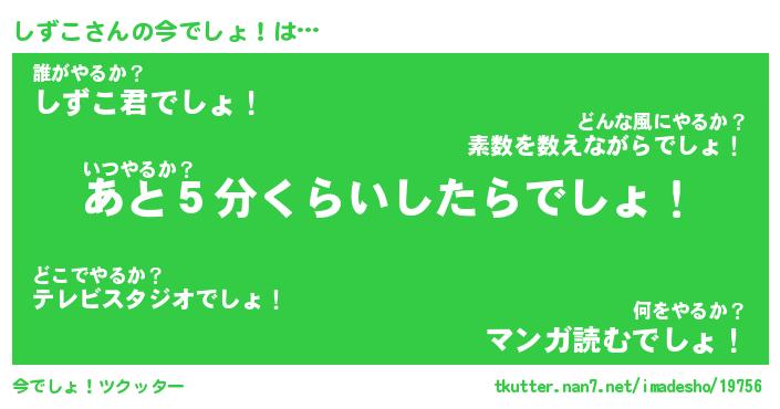 | 意味不明あだ名 | 『ペロリンしずこ』『しずこフォーエバー』 |
