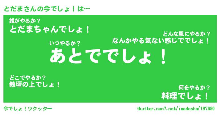 | ヘコむあだ名 | 『とだっふぃ~』『酢こんぶ』 |